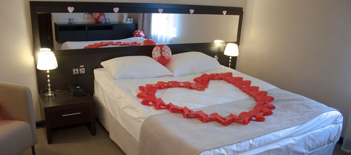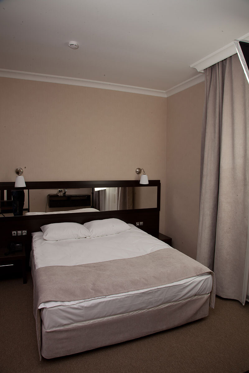 Если вы хотите провести незабываемую романтическую ночь в нашем отеле, то зеркала напротив кровати придадут обстановке невероятный и незабываемый вид. Кровать с зеркальным изголовьем присутствует практически во всех категориях номеров, для уточнения вы можете посмотреть фотографии на сайте.