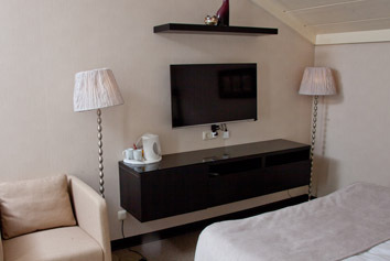 Номера отеля оснащены телевизорами с большими диагоналями с Wi-Fi и SMART-TV: